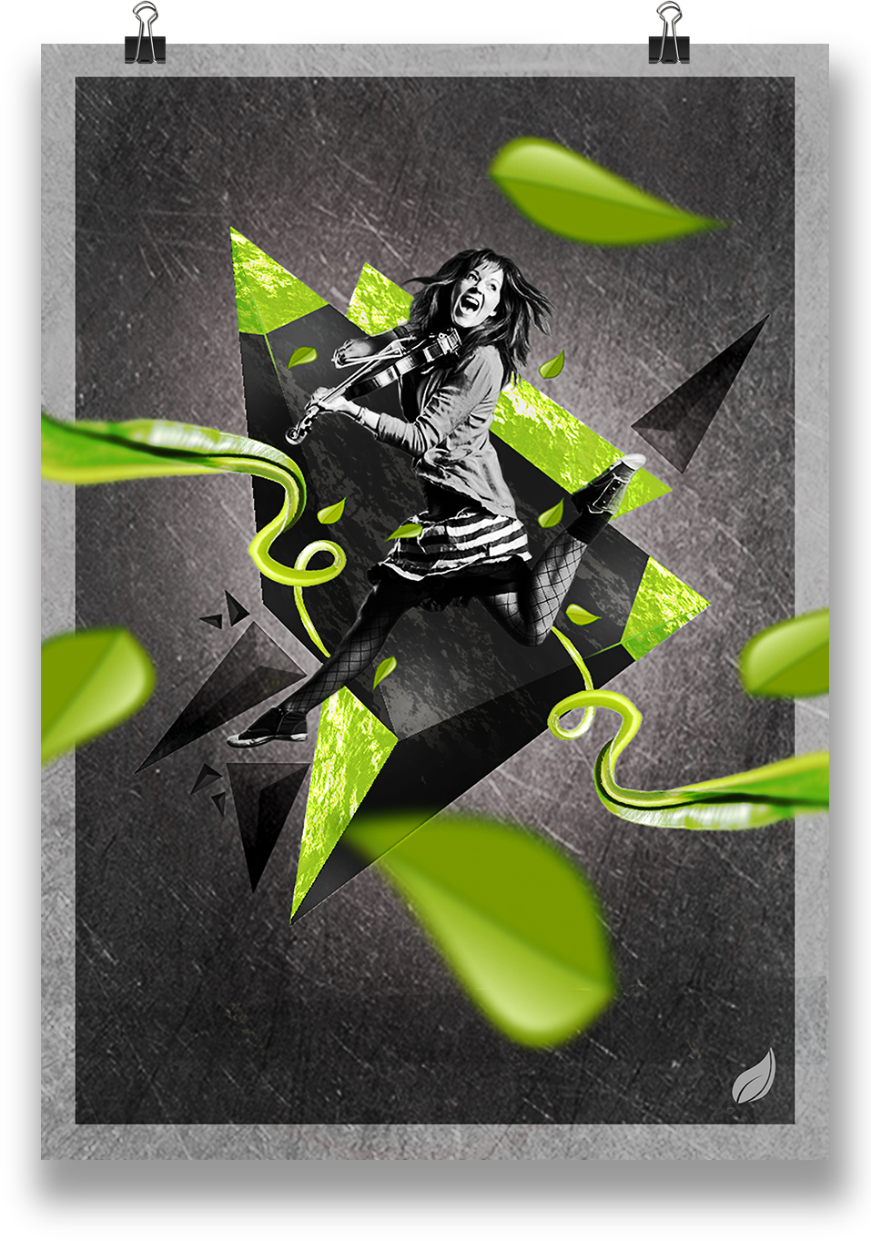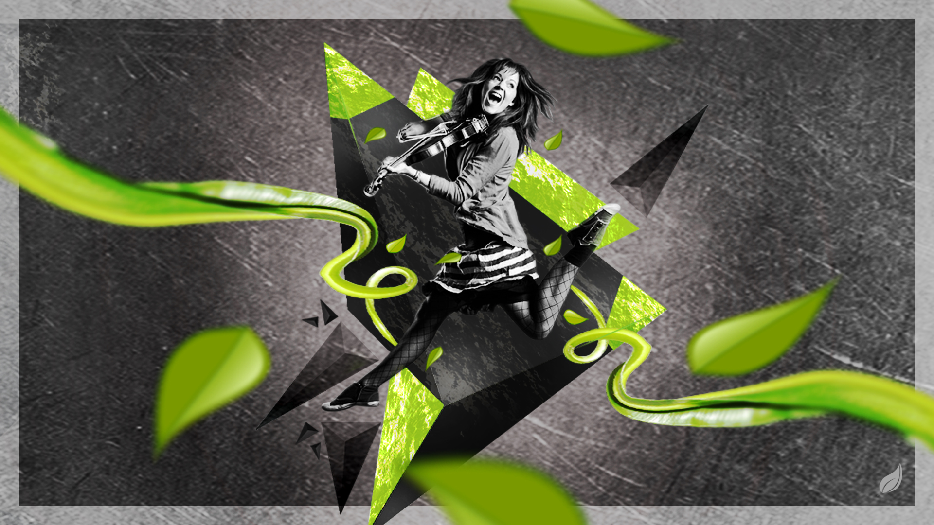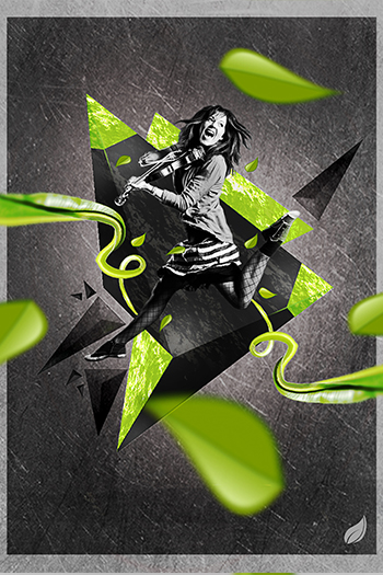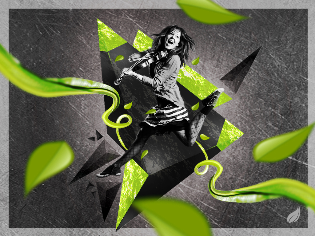 Pour cette création j'ai été inspiré par Lindsey Stirling, une violonniste très talentueuse qui exprime sa musique avec son archet mais aussi son corps. Outre l'influence végétale dans cette création il y a une réelle volonté de mouvement avec les feuilles volantes, cette pyramide qui se destructure ainsi que les deux liannes.